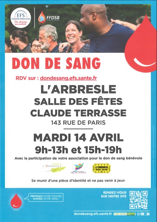 Rendez-vous mardi 14 avril de 9h à 13h et de 15h à 19h à la salle Claude Terrasse, rue de Paris à L'Arbresle.