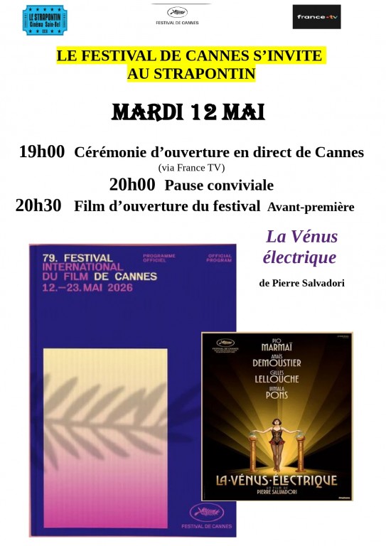 Mardi 12 mai, à l'occasion du début du Festival de Cannes, le Strapontin vous propose une soirée conviviale.